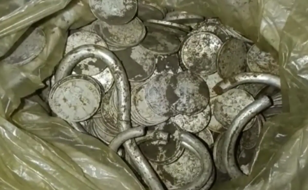चांदी के आभूषणों के साथ सिक्के एक धातु के बर्तन में मिले थे, जिसे जमीन में दबा दिया गया था।
